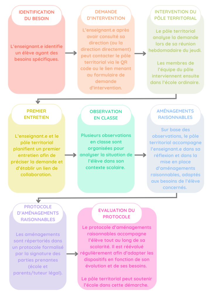 Le pôle territorial peut être sollicité à tout moment pour apporter son expertise lorsque les aménagements raisonnables envisagés au sein de l’école ne suffisent pas à répondre aux besoins de l’élève.